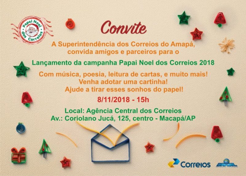 Nesta quinta-feira (8), a Superintendência dos Correios do Amapá realiza o lançamento da campanha Papai Noel dos Correios 2018.