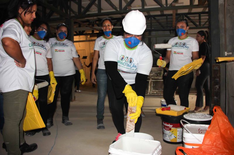 Participantes do Curso de Construção Civil, promovido pela Prefeitura de Macapá, tiveram aulas práticas nas obras do Mercado Central. A ação conta como parte das atividades curriculares da capacitação. Nesta etapa, as participantes aprendem métodos e técnicas de pintura. Na próxima fase, elas serão habilitadas a fazer o assentamento de cerâmicas, pisos e azulejos.