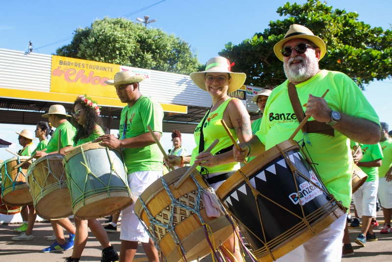 Com colorido e som inconfundível, o Banzeiro do Brilho de Fogo desfilou neste domingo, 7, durante a abertura do Macapá Verão 2019, no balneário da Fazendinha. Os batuqueiros, açucenas, mulheres e crianças tomaram conta da avenida principal, tocando músicas regionais, versos de Marabaixo, entoadas com acompanhamento de caixas, que formam a percussão, e metais.