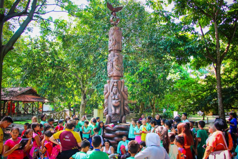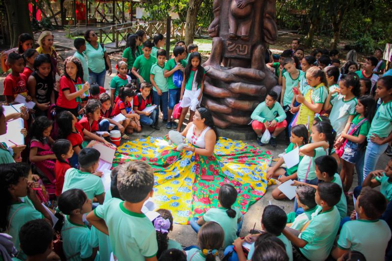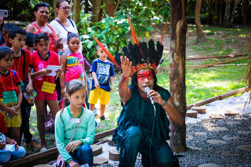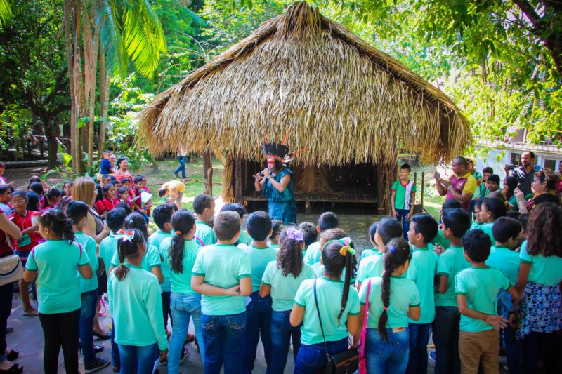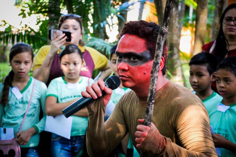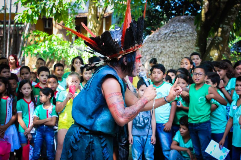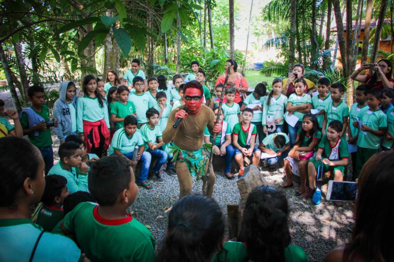 Realizado pela Secretaria Municipal de Educação, “Contos do Meu Povo” é um projeto que tem como objetivo valorizar a memória cultural de uma forma lúdica, buscando aliar a leitura ao visual. Para ajudar na tarefa, as crianças assistiram à encenação da lenda do Peixe-Boi, Cobra Sofia e Samaúma. Depois acompanharam apresentações de Marabaixo e conheceram as exposições e espaços do Museu Sacaca.