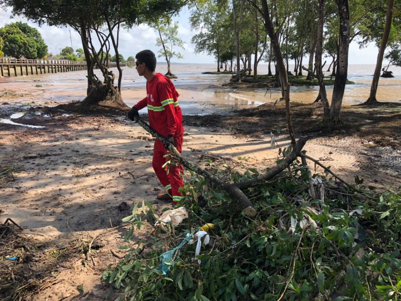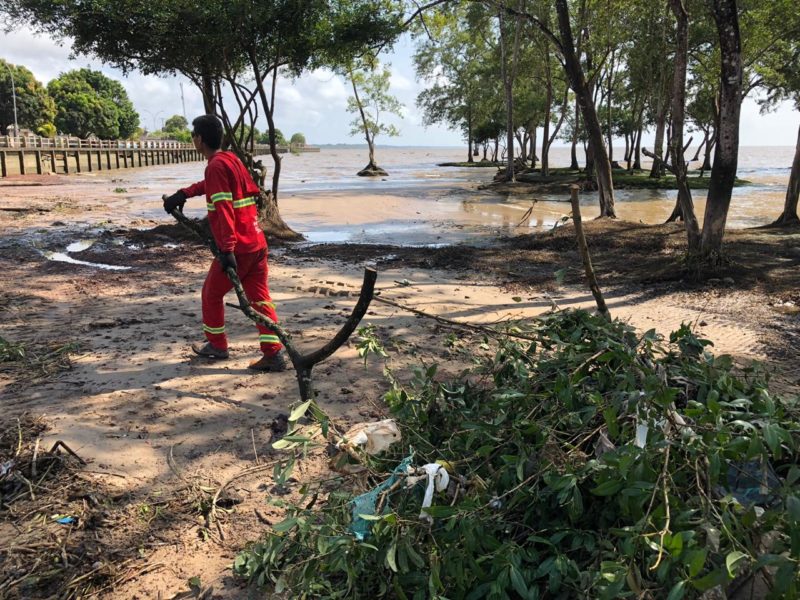 Como parte das atividades alusivas ao Dia Mundial da Limpeza, a Prefeitura de Macapá realizou neste sábado, 21, uma ação na orla do bairro Cidade Nova, que recolheu milhares de resíduos do rio Amazonas, entre eles centenas de garrafas PET, sacolas plásticas e até móveis. A data busca conscientizar para a preservação ambiental, como o reuso de materiais.