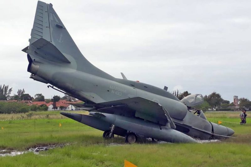 Um caça da Base Aero Naval de São Pedro da Aldeia, na Região dos Lagos (RJ), sofreu uma avaria durante a decolagem na manhã de hoje (21) e, em seguida, pegou fogo, o que causou a destruição da aeronave, informou a Marinha por meio do Comando do 1º Distrito Naval.