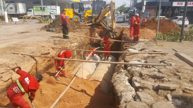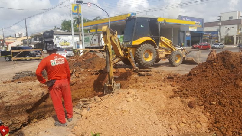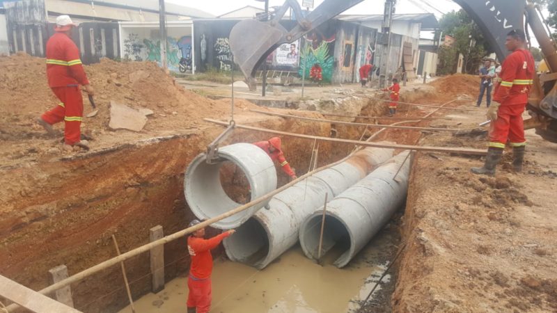 Seguindo o cronograma de serviços de melhorias no sistema de drenagem pluvial da cidade, a Prefeitura de Macapá dá continuidade à instalação de tubos de concreto para galeria auxiliar de vazão das águas das chuvas. A nova rede de escoação evitará que vias do Centro, como a Av. Cora de Carvalho, sofram com acúmulos de água no período de chuva. Nesta quinta-feira, 31, as obras estão sendo executadas na Av. Padre Júlio Maria Lombard com a Rua Odilardo Silva.