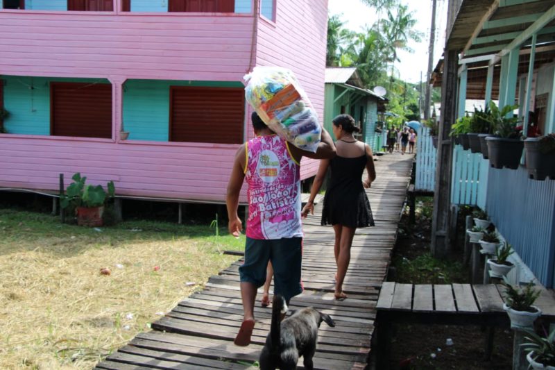 No Bailique, famílias em vulnerabilidade social recebem kit bebê e cestas básicas