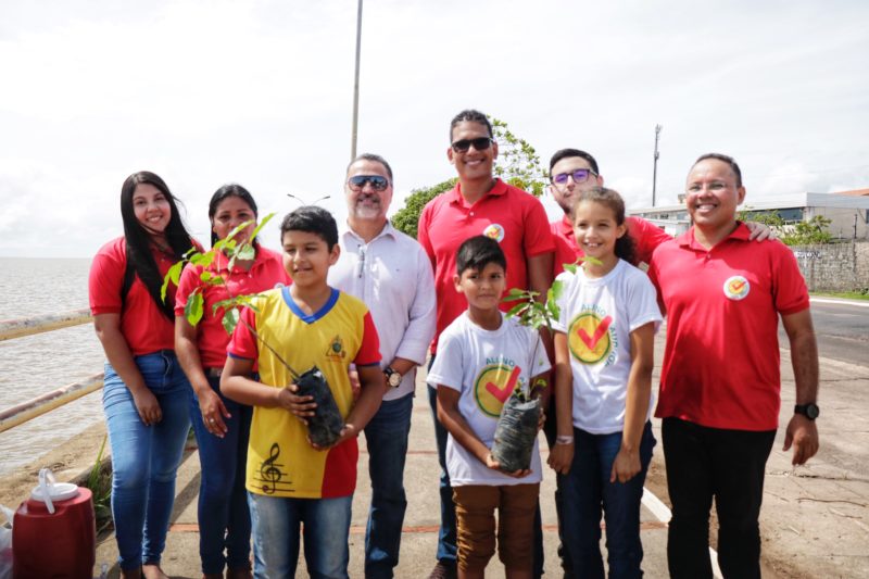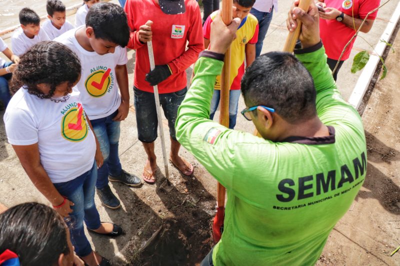 Preocupada com a conservação e bem-estar da ambiência e seus usuários, a Prefeitura de Macapá, por meio da Secretaria Municipal de Meio Ambiente (Semam), e com a participação de alunos do quarto ano da Escola Municipal Maestro Miguel da Silva, plantou na manhã desta terça-feira, 17, no entorno da orla do bairro Perpétuo Socorro, mudas de ipês, oitis e de plantas frutíferas. A meta é colocar vegetais em bairros que tiverem pouquíssima variedade delas e, a longo prazo, estabelecer o equilíbrio do ecossistema e embelezar os lugares onde foram enraizadas.