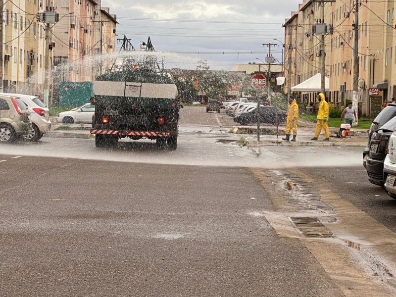 Em meio ao crescimento do número de casos suspeitos e confirmados do novo Coronavírus na cidade, a prefeitura avança com as estratégias de combate e prevenção ao Covid-19. A desinfecção e higienização de ruas e locais públicos ocorrem diariamente e agora também durante o dia.
