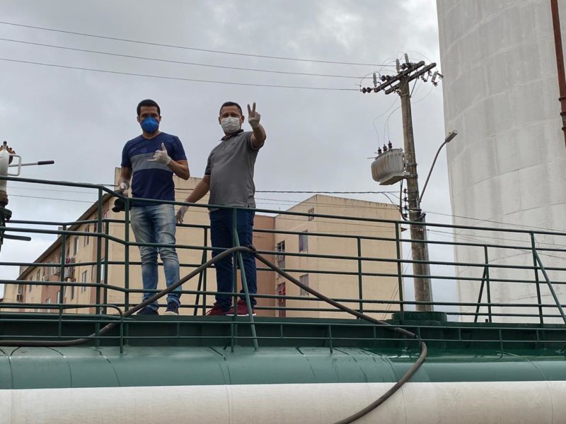 Ao todo, 150 homens estão envolvidos na ação, divididos em seis frentes de trabalho, executando de forma simultânea os serviços que acontecem por meio de hidrojatos (que permitem o processo de áreas externas) e bombas costais (garantem a limpeza interna) e também seis caminhões pipa com capacidade de 22 mil litros de agua, (fazendo a lavagem de ruas). O produto utilizado é uma mistura de água, cloro isocianurato de sódio 65% e detergente, eficazes na desinfecção de áreas com possíveis contaminações.
