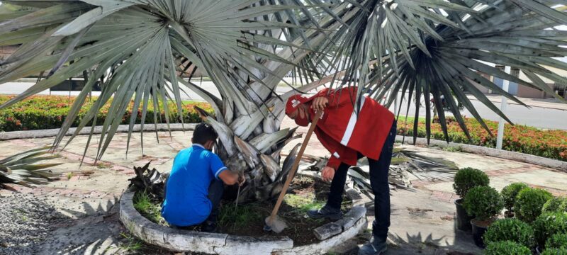 A Prefeitura de Macapá segue regularmente no plano de arborização da capital promovendo a limpeza e paisagismo em rotatórias, canteiros e triângulos presentes em diversos pontos da cidade. Nesta quarta-feira (9), a Secretaria de Meio Ambiente, Desenvolvimento Sustentável e Postura Urbana (Semam) realizou o serviço de plantio de mudas arbóreas de palmeiras, ‘flores de coral’ e ‘bruxinhos’ na rotatória do Araxá, zona sul da capital.