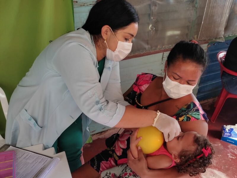 De casa em casa, chamando os vizinhos, conhecidos, reunindo as crianças, assim é a busca ativa das equipes de saúde da Prefeitura de Macapá nos bairros da capital. O serviço leva atendimentos e orientação, além de fazer a atualização do cartão de vacinação infantil.