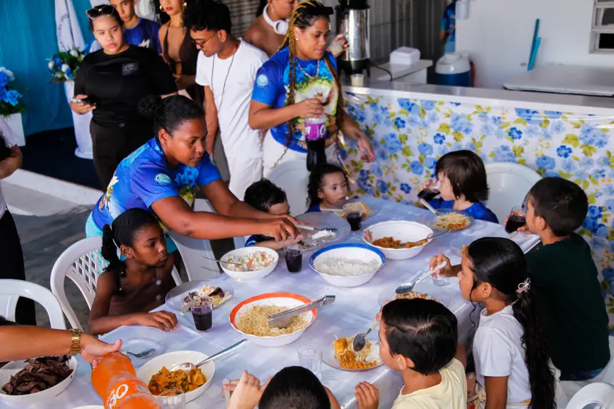 O Almoço dos Inocentes marcou um dos momentos mais emocionantes da programação do Ciclo do Marabaixo 2025, no domingo, 15. Apoiada pelo Governo do Amapá, a programação dedicada às crianças aconteceu simultaneamente nos barracões Berço do Marabaixo, Associação Zeca e Bibi Costa (Azebic) e Raízes da Favela, na zona urbana, e na Casa Grande, na região rural de Macapá. A simbologia traz consigo histórias de fé e graças alcançadas após promessas feitas à Santíssima Trindade. Não se trata de um simples ritual, mas de uma legados ancestrais.