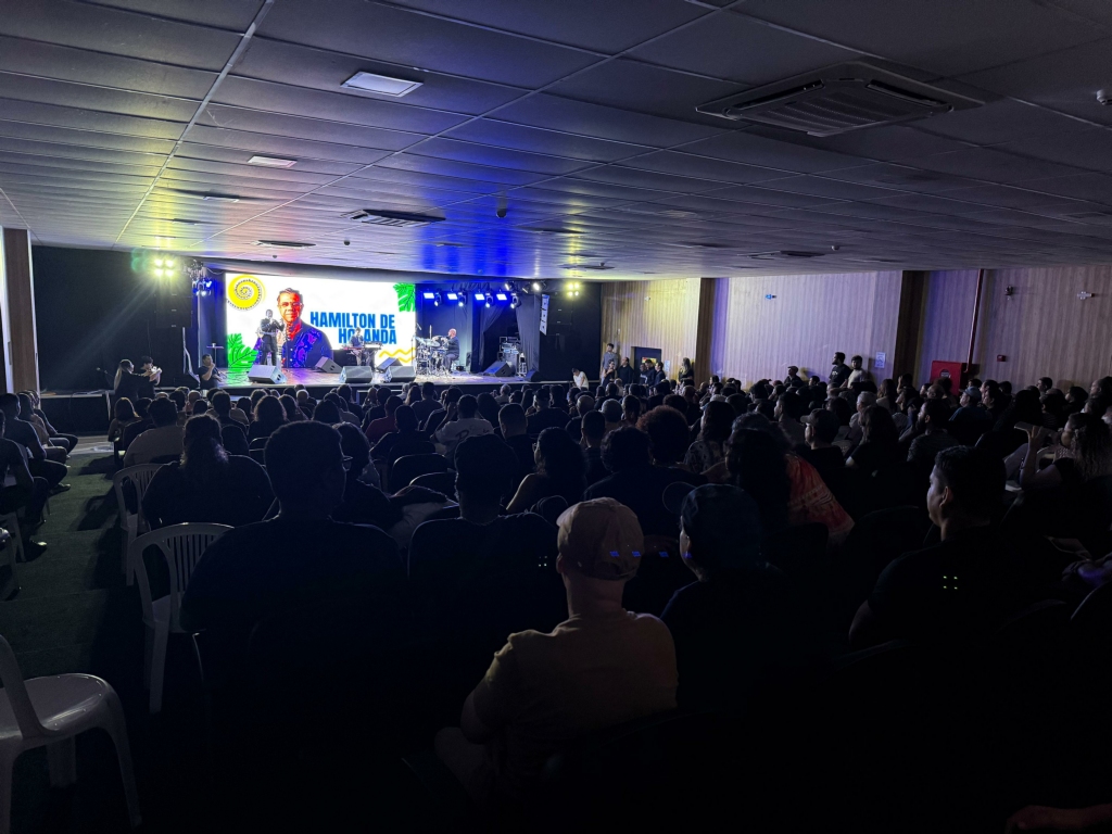O palco do Festival Amazônia Eco Música ganhou destaque com a apresentação do Hamilton de Holanda Trio, formado por Hamilton no bandolim, Salomão Soares no piano e Thiago Rabello na bateria. O trio conduziu o público por uma experiência musical sofisticada, unindo improviso, jazz, música popular brasileira e referências amazônicas. O espetáculo emocionou pela intensidade e pela fusão de estilos, reafirmando a proposta do festival de valorizar a música como expressão cultural.