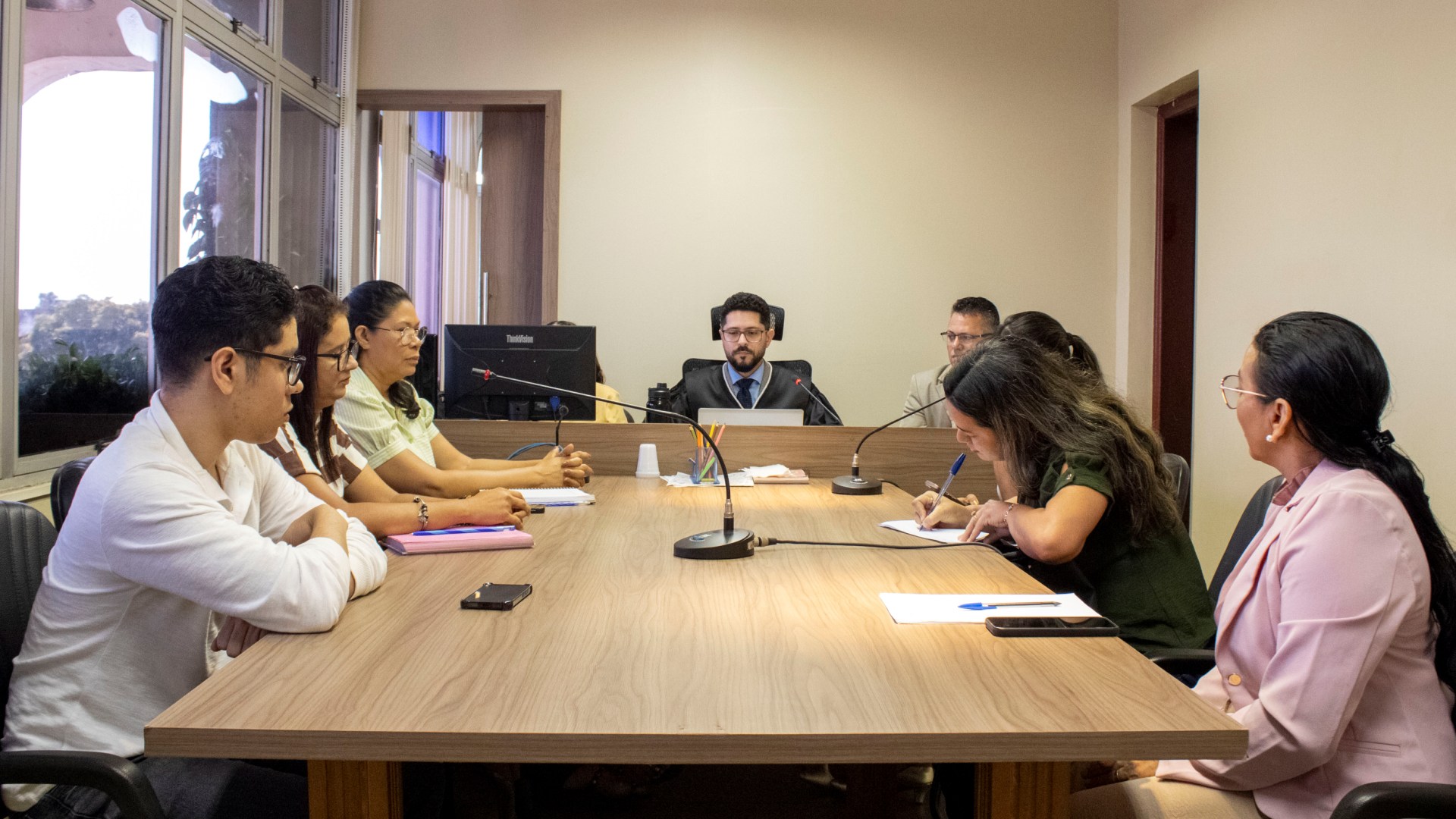 Na audiência desta terça-feira, participou a equipe técnica da Casa Abrigo Marluza Araújo, formada por psicólogos, assistentes sociais e pedagogos, além da titular da 3ª Promotoria de Justiça da Infância e Juventude e coordenadora do Centro de Apoio Operacional da Infância, Samile Alcolumbre.