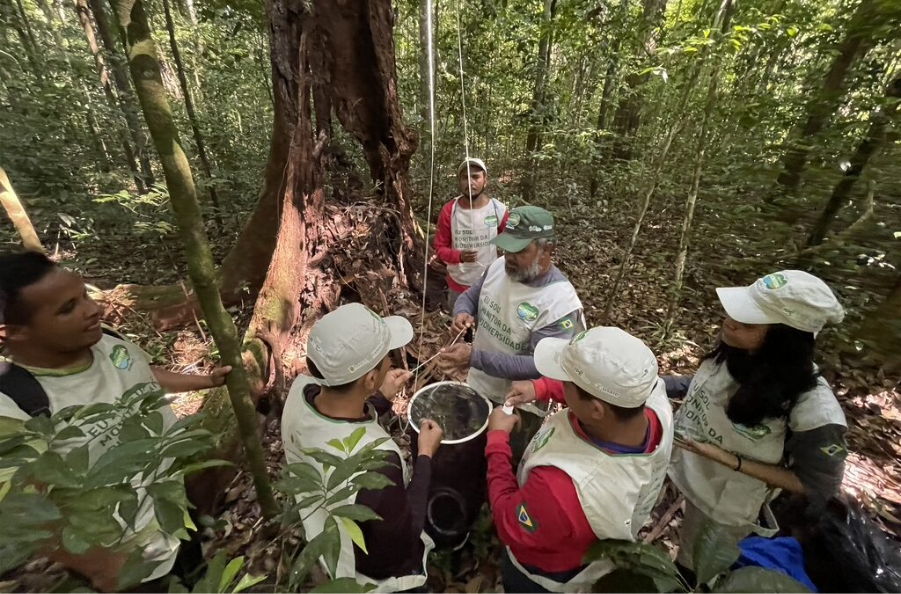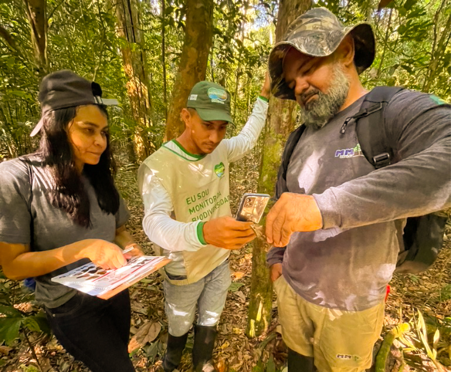 Em Caxiuanã, o projeto é realizado desde 2022. A ação surgiu a partir de uma demanda local para entender os impactos da concessão florestal realizada em uma das duas áreas atualmente sob concessão na Flona. Um dos objetivos é mensurar o impacto que essa ação gera sobre a biodiversidade da unidade de conservação. A pesquisa, realizada por moradores e supervisionados pelo Núcleo de Gestão Integrada do ICMBio de Breves/PA, com apoio do IPÊ, avalia tanto as áreas conservadas como as áreas de manejo florestal, onde ocorrem os monitoramentos de plantas, borboletas, aves e mamíferos.