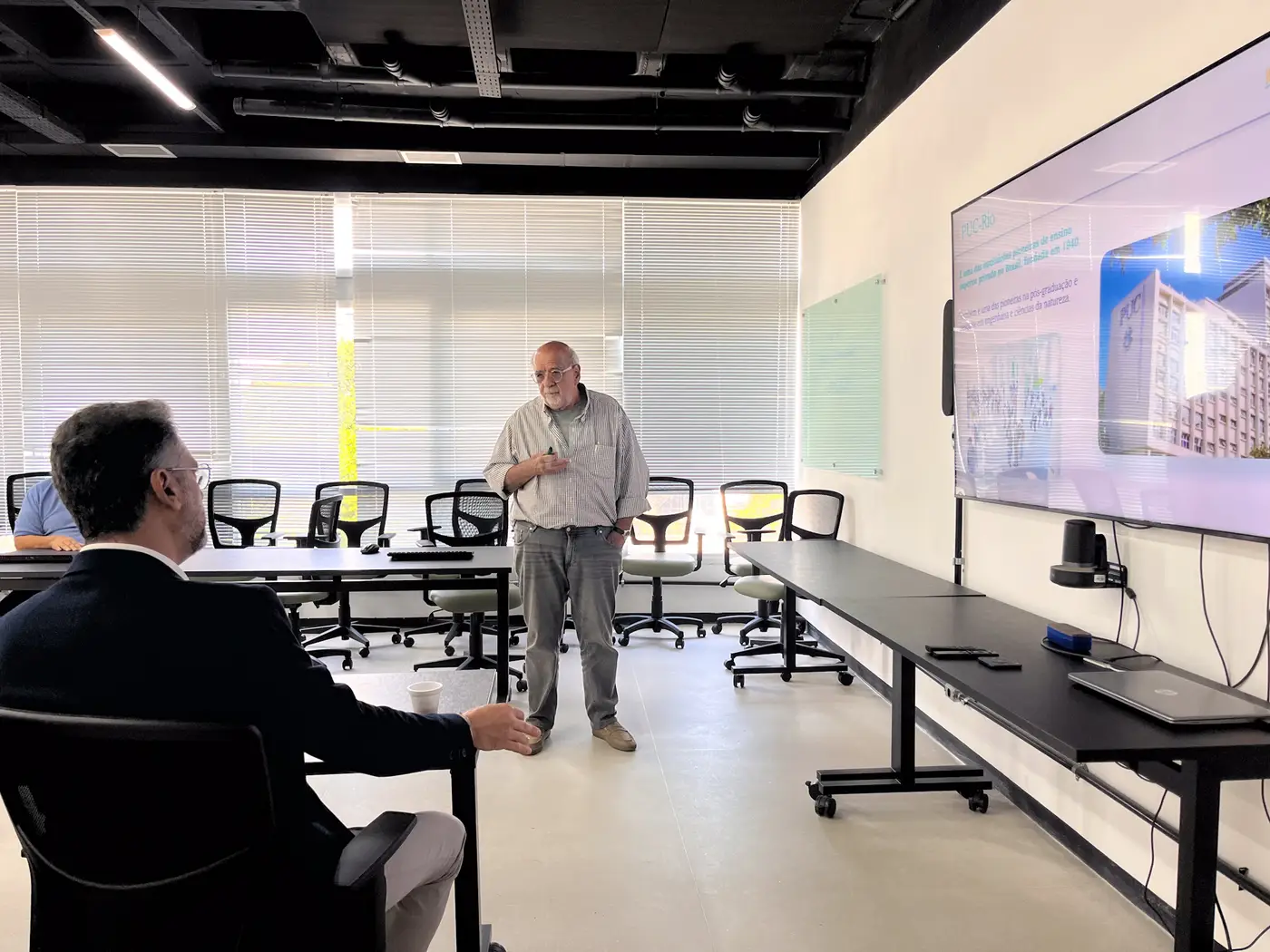 A visita aconteceu no prédio do Instituto de Energia da PUC-Rio (IEPUC), onde a comitiva foi recebida pelo professor Eloi Fernández y Fernández, diretor da instituição, e pela equipe técnica do Instituto.