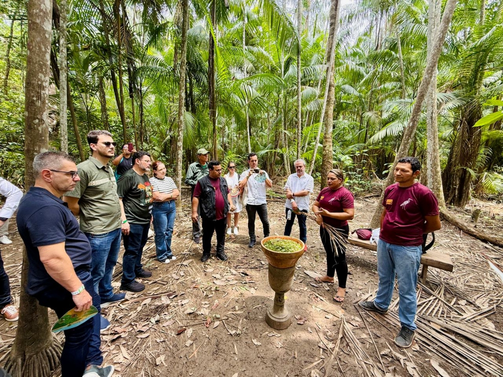 Durante a visita, os participantes passaram pela Casa do Chocolate, onde desfrutaram de uma degustação. Em seguida, percorreram a Trilha da Samaúma e conheceram a Ygara Artesanal, um empreendimento que vai muito além do comércio, representando um verdadeiro modo de vida. O principal manejo, é o açaí de várzea, cultivado com respeito ao ritmo da natureza e à sabedoria tradicional dos ribeirinhos. A experiência foi encerrada com o tradicional Banho de Cheiro, uma prática cultural rica em aromas, significados e conexão com as raízes amazônicas.
