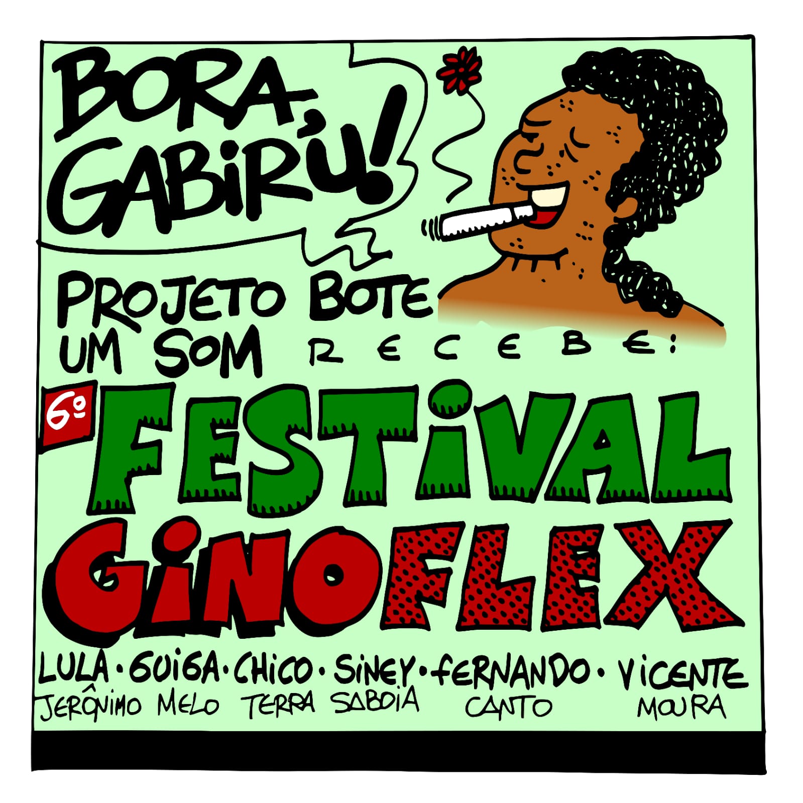 O evento presta tributo a Gino Flex, Lula Jerônimo, Guiga Melo, Chico Terra, Siney Saboia, Fernando Canto e Vicente Moura — artistas que marcaram profundamente a cena cultural do estado com poesia, música, pensamento crítico, humor e uma forma única de viver a arte.
