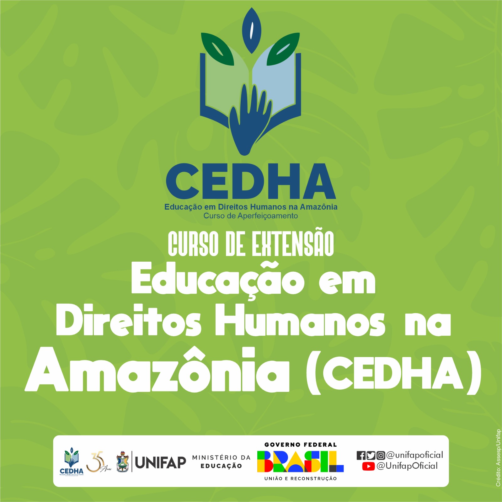 O CEDHA é uma realização da Unifap, por meio da Pró-reitoria de Extensão e Ações Comunitárias (Proeac) e Programa de Pós-graduação em Educação (PPGEd), em parceria com o Ministério da Educação (MEC), por meio da Secretaria de Educação Continuada, Alfabetização de Jovens e Adultos, Diversidade e Inclusão (Secadi).