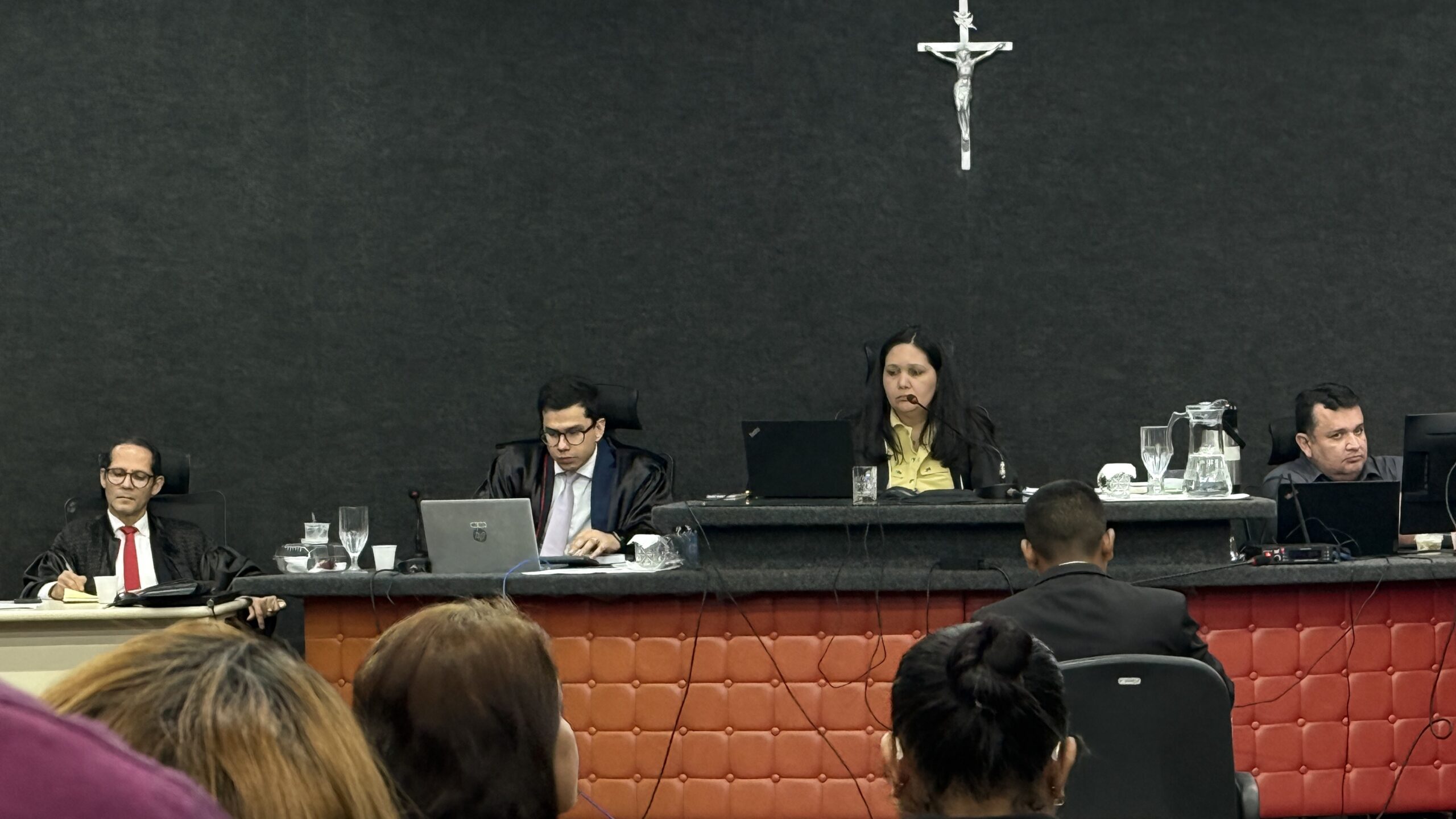 A Vara do Tribunal do Júri de Macapá, sob a titularidade da juíza Lívia Simone Freitas, deu início, na manhã de segunda-feira (27), ao julgamento do Processo nº 0056364-67.2019.8.03.0001. A sessão plenária se estendeu até às 23h30 e foi retomada na manhã desta terça-feira (28). O caso envolve três réus, e uma série de fatos ocorridos na madrugada de 25 de agosto de 2019, no bairro Marabaixo 4, em Macapá.